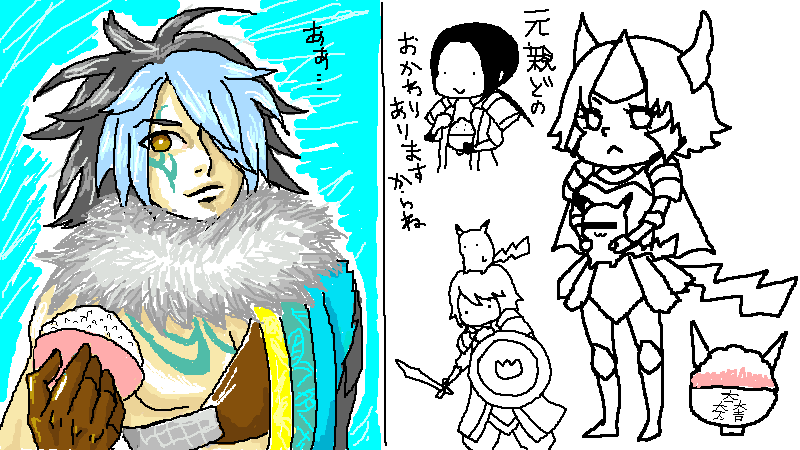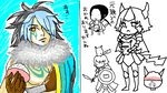 左右でとんだ異空間ですね。途中までは真面目に描こうとがんばってたんですけどすぐに挫折してネタに走りました。最後ははつかさんのかっこいい元親を巻き込む事態!(ごはん)