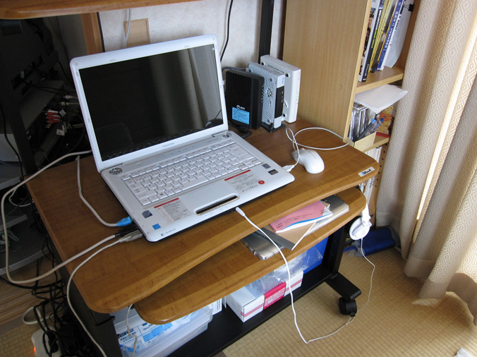 こんな感じです。以前はデスクトップPCだったので、台がそのままです。